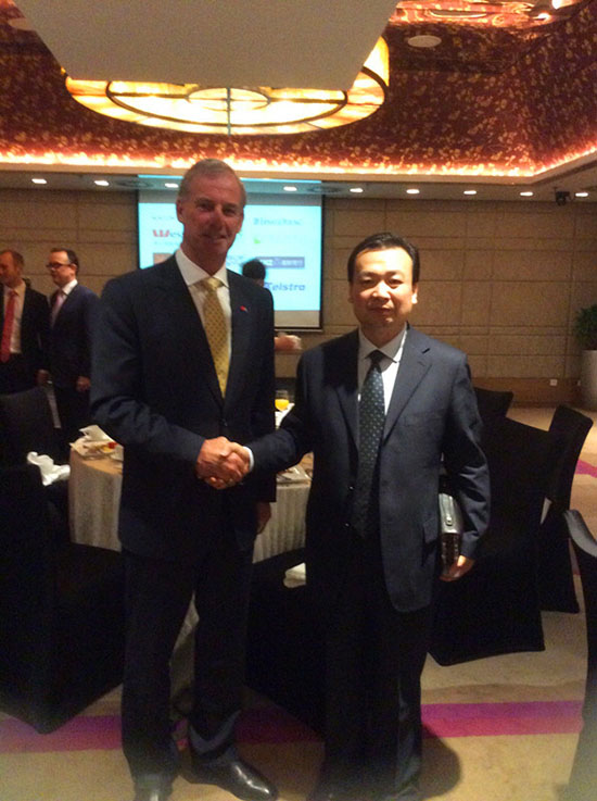 執(zhí)行主席趙晨先生一行出席澳大利亞農(nóng)業(yè)議會(huì)次長(zhǎng)早餐會(huì)2015年4月23日中國(guó)國(guó)際商會(huì)有機(jī)產(chǎn)業(yè)發(fā)展委員會(huì)執(zhí)行主席、北京五岳華夏管理技術(shù)中心主任趙晨、中國(guó)國(guó)際商會(huì)有機(jī)產(chǎn)業(yè)發(fā)展委員會(huì)副主席兼秘書(shū)長(zhǎng)彭海、中國(guó)國(guó)際商會(huì)有機(jī)產(chǎn)業(yè)發(fā)展委員會(huì)秘書(shū)長(zhǎng)助理王娟,應(yīng)澳大利亞農(nóng)業(yè)會(huì)議次長(zhǎng)理查德.科爾貝克的邀請(qǐng),出席了金茂北京威斯汀大飯店舉行的早餐會(huì)。會(huì)上,理查德.科爾貝克次長(zhǎng)介紹了中澳自貿(mào)協(xié)定政策及澳大利亞農(nóng)業(yè)白皮書(shū),并回答了參會(huì)企業(yè)的相關(guān)提問(wèn)。會(huì)后,趙主席一行與次長(zhǎng)理查德.科爾貝克及隨行人員、澳大利亞駐中國(guó)大使館商務(wù)參贊蘇珊女士進(jìn)行了友好交流。會(huì)上,與中國(guó)澳大利亞商會(huì)主席、澳商會(huì)農(nóng)業(yè)工作委員會(huì)主席、澳大利亞商會(huì)農(nóng)業(yè)會(huì)員代表及中國(guó)企業(yè)代表等進(jìn)行了交流。通過(guò)此次會(huì)議,為中-澳自貿(mào)協(xié)定簽訂后的進(jìn)一步中-澳農(nóng)業(yè)往來(lái)、為推進(jìn)有機(jī)農(nóng)業(yè)、特別是澳洲有機(jī)農(nóng)業(yè)的發(fā)展奠定了基礎(chǔ)。
